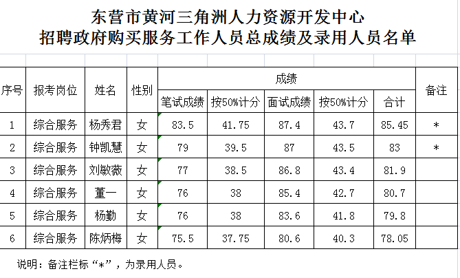 根據(jù)本次招聘活動(dòng)的安排,現(xiàn)將進(jìn)入面試人員的總成績(jī)及錄用人員名單予以公布。望被錄用人員按照統(tǒng)一規(guī)定和要求辦理相關(guān)錄用手續(xù)。