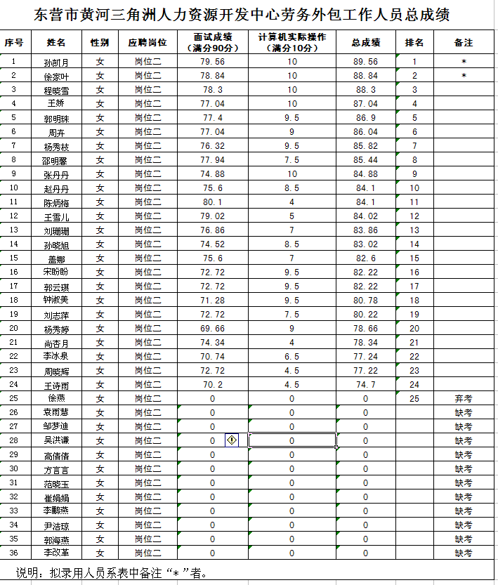 根據(jù)本次招聘活動(dòng)的安排,現(xiàn)將考試人員的總成績及擬錄用人員名單予以公布。望擬錄用人員按照統(tǒng)一規(guī)定和要求辦理相關(guān)手續(xù)。